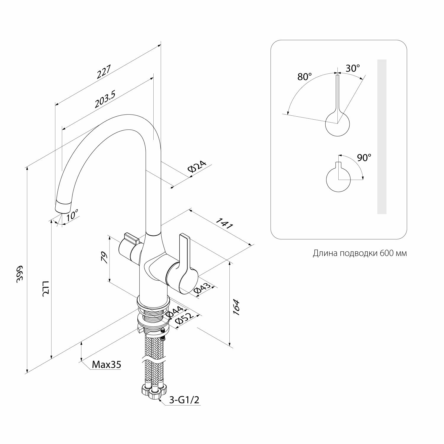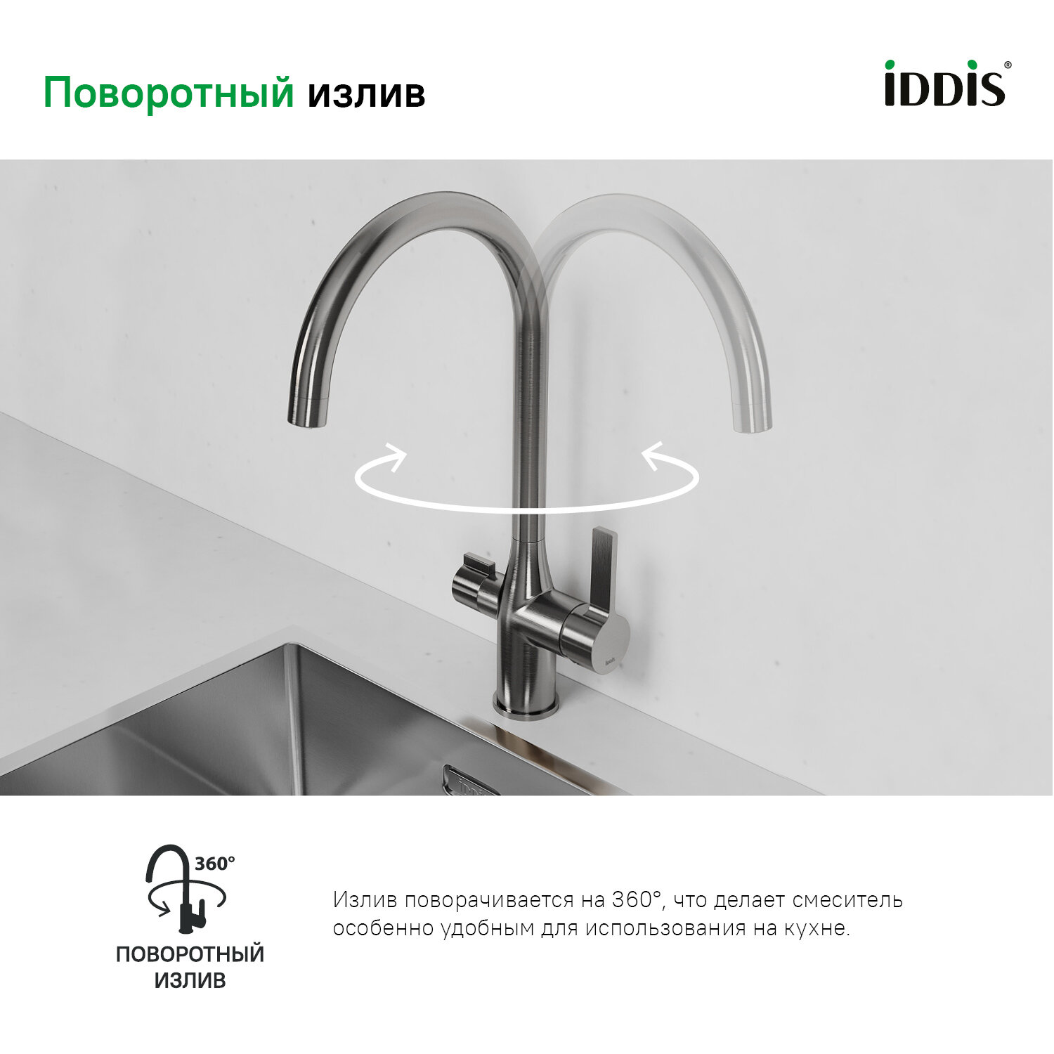 Смеситель для кухни 35к IDDIS PURBNFJi05 "Pure" с вых для питьевого фильтра, выс. пов излив сатин**