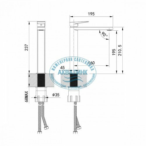 | Комплектация | смеситель, пластиковый аэратор, гибкая подводка 35 см, комплект крепления |