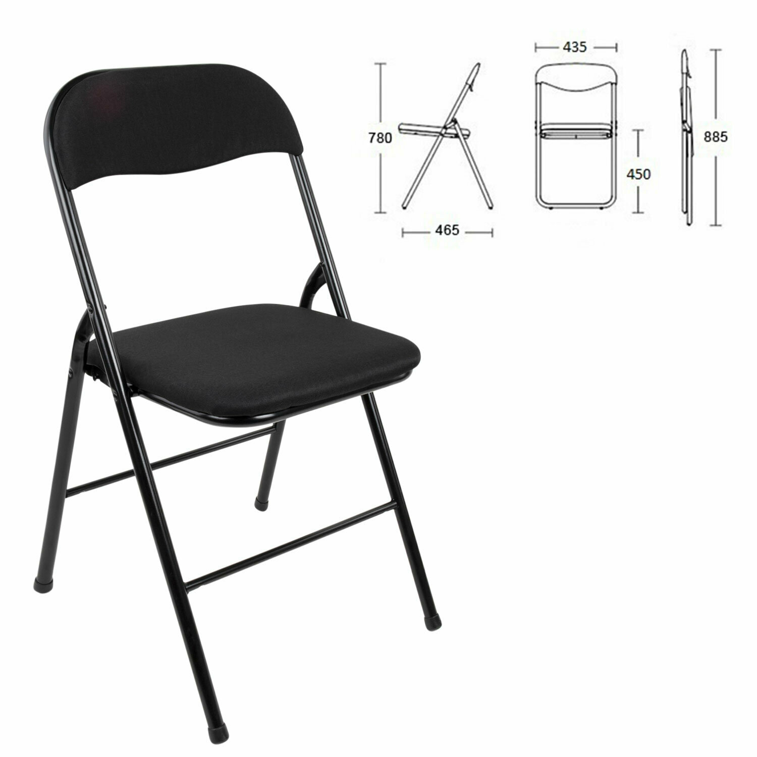Стул складной BRABIX "Golf Plus CF-003 комфорт", чёрный каркас, чёрная ткань, 532889