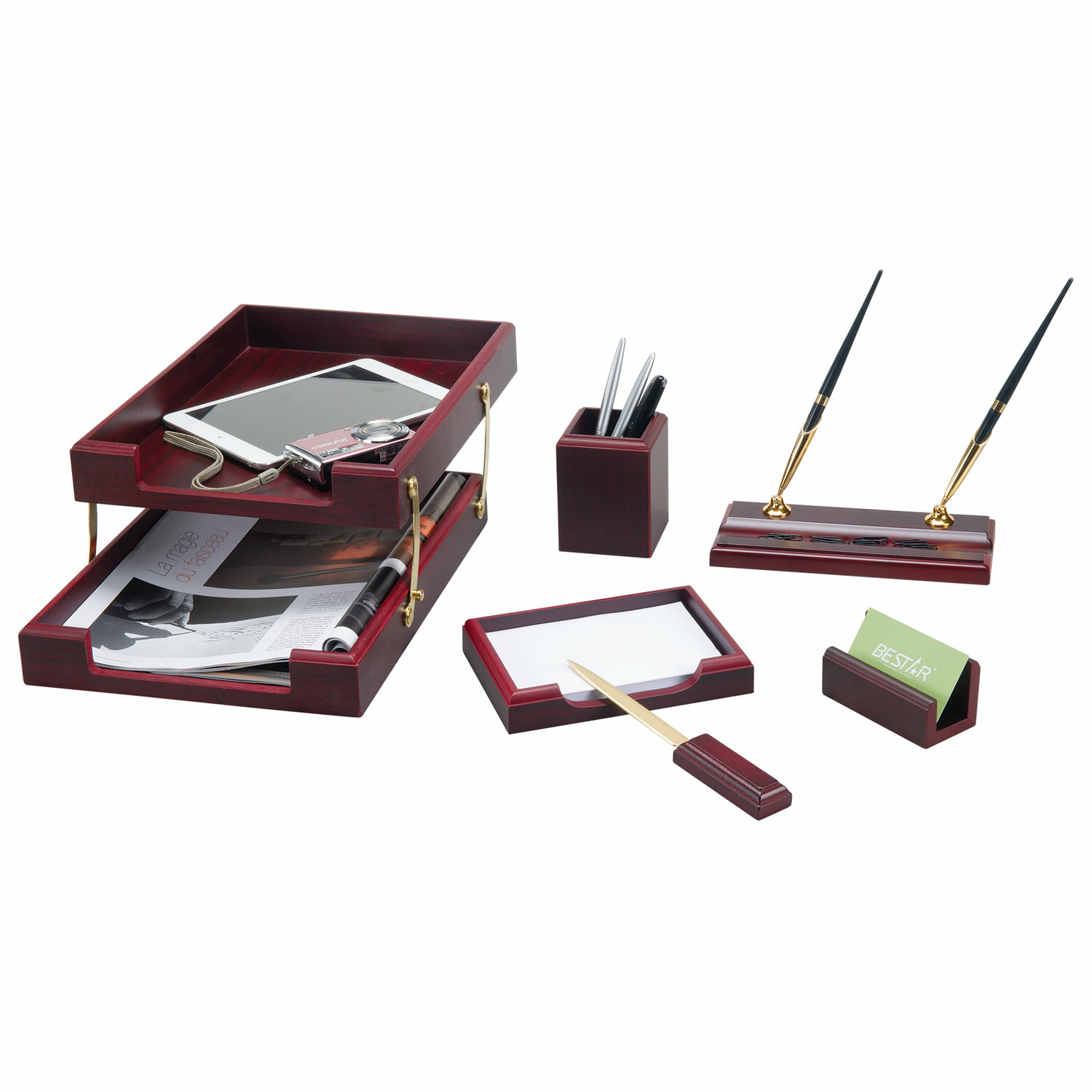 Настольный набор деревянный Bestar Apollon (6 предметов) двойной лоток, красное дерево (236353)
