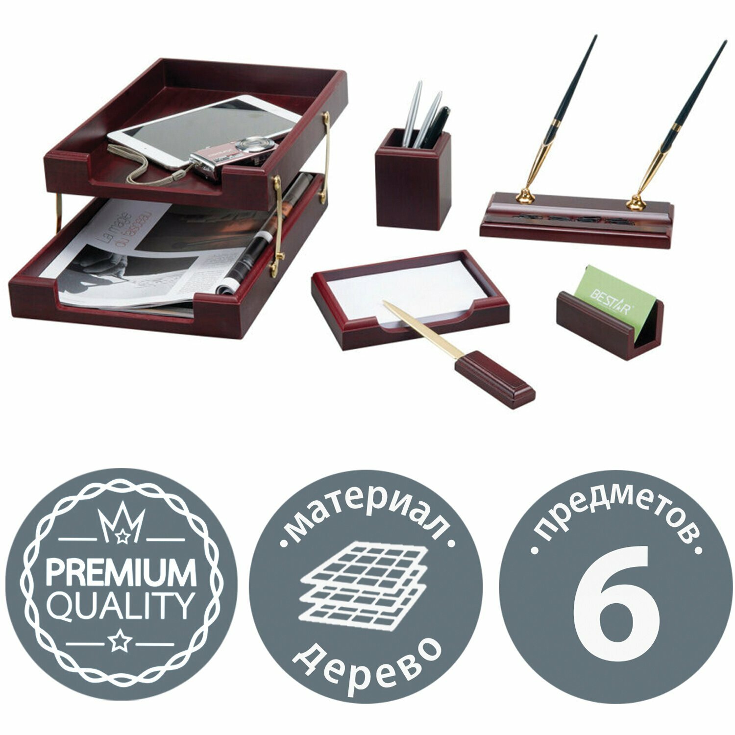 Набор настольный BESTAR "Apollon" из дерева, 6 предметов, цвет "красное дерево"