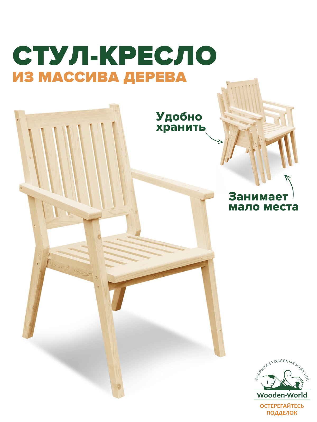 Стул кресло садовое с подлокотниками деревянное со спинкой из массива дерева