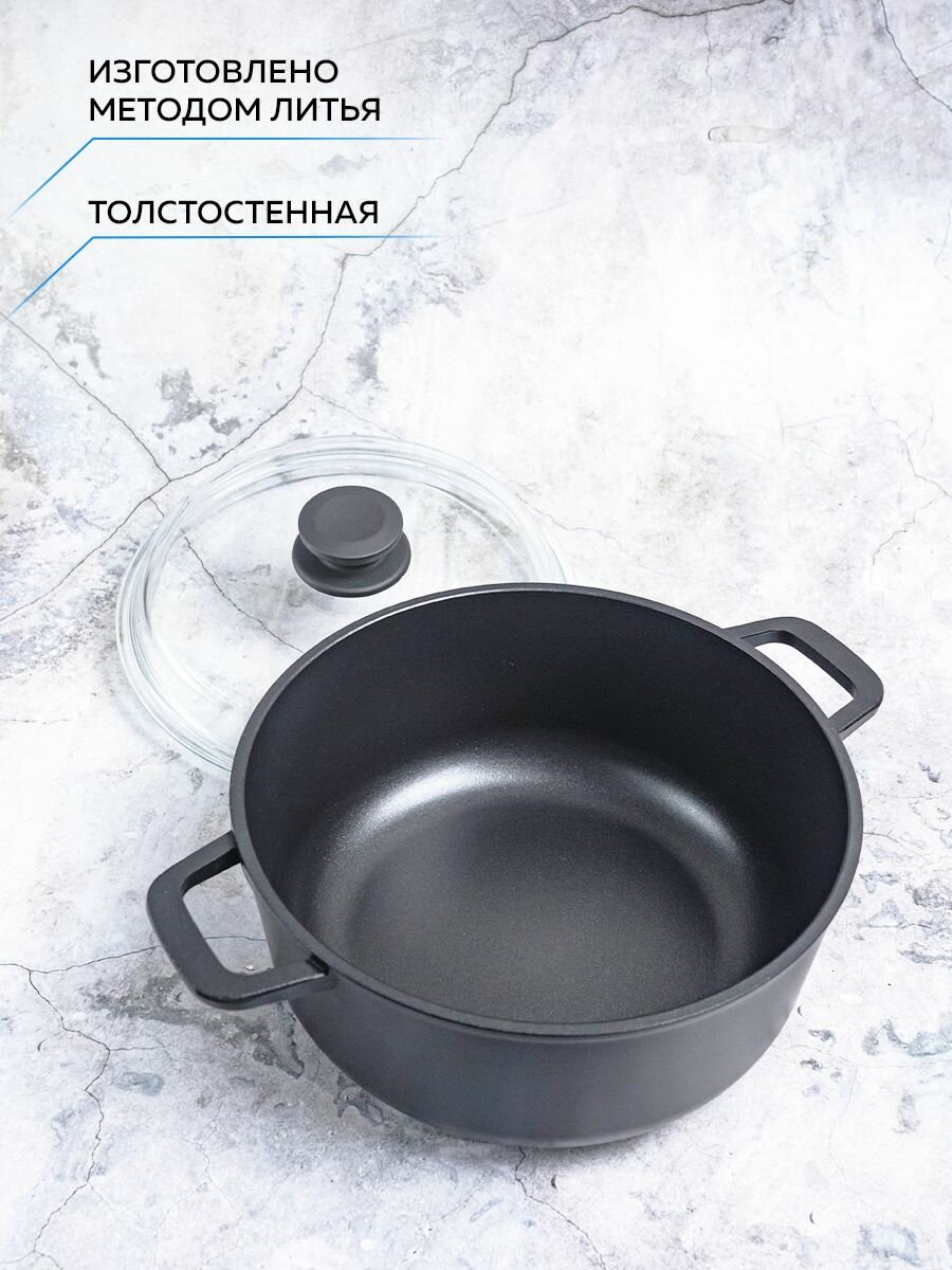 Кастрюля со стеклянной крышкой 4л. утол.дно "Шеф" индукция