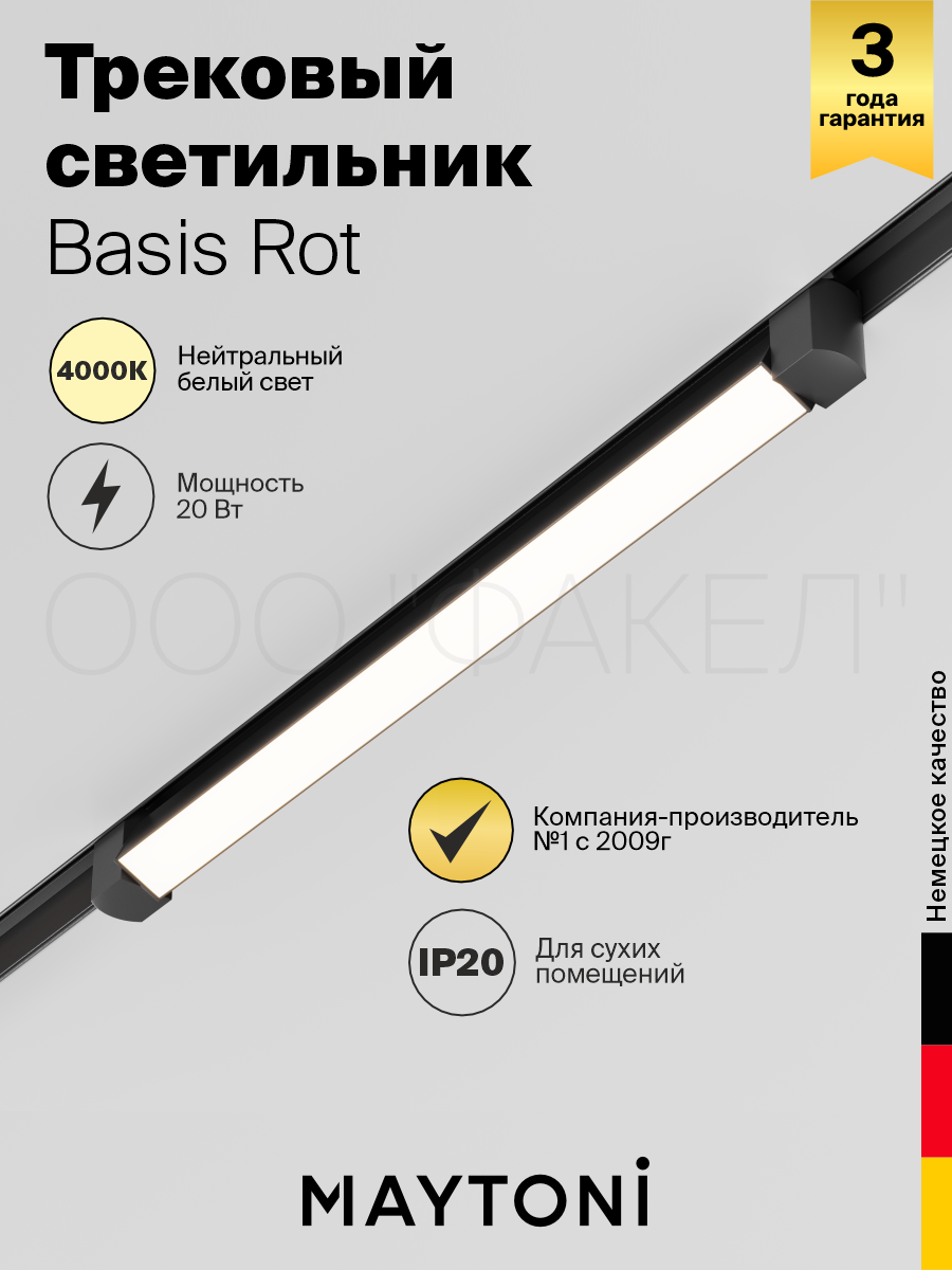Трековый светильник Maytoni Basis Rot Unity TR104-1-20W3K-B, Черный, LED