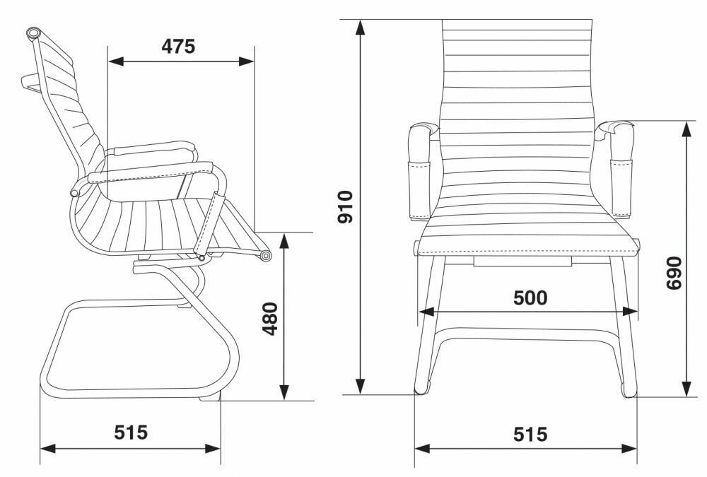 Кресло посетителя Бюрократ, CH-883-LOW-V/BLACK (черный иск.кожа, низкая спинка, полозья хром)