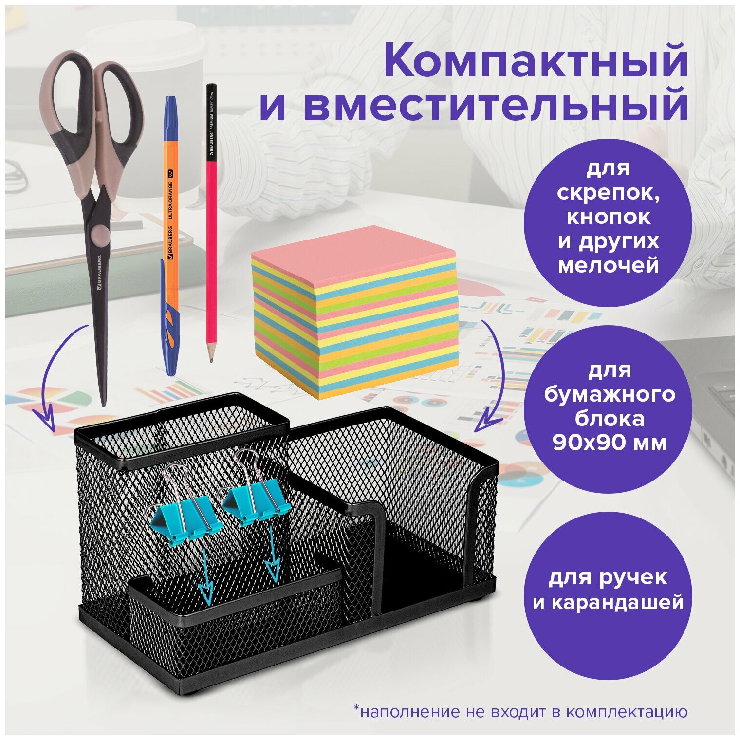 Подставка-органайзер BRAUBERG "Germanium", металлическая, 3 секции, 102х186х95 мм, черная, 231986 В комплекте: 1шт.