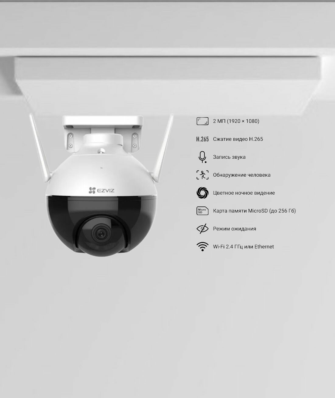 Ezviz C8C PTZ (4mm) WiFi камера с функцией "поворот + наклон", с цветным ночным режимом, распознаванием людей