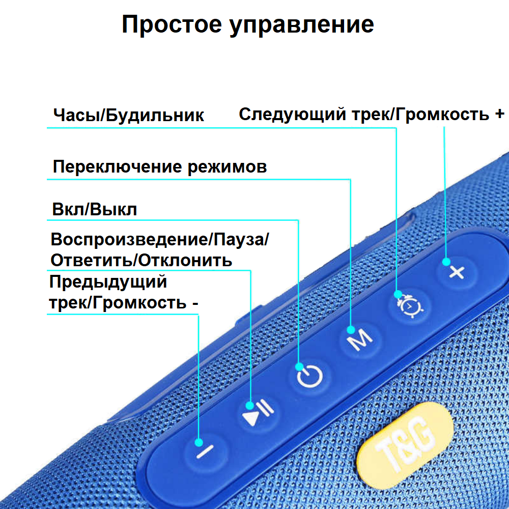 Беспроводная колонка TG-176 (10W/BT/FM/USB) Часы (синий) интересное: