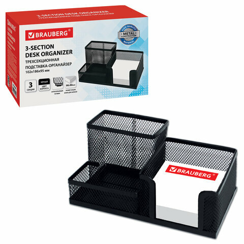 Подставка-органайзер BRAUBERG, металлическая, 3 секции, 102*186*95 мм, черная