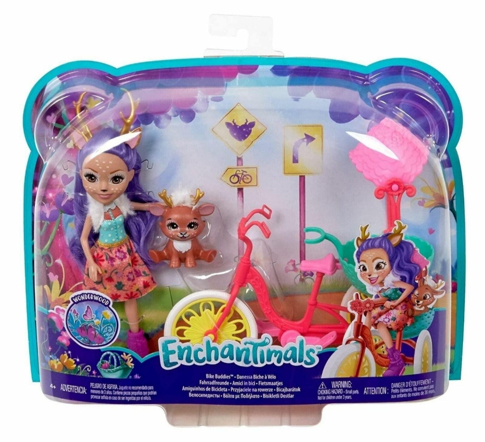 Купить Игровой набор Enchantimals GJX30 Bicycle Friends (прибл. 28 см) с куклой-оленем Данессой (прибл. 15 см) и фигуркой животного Sprint, кукла с подвижными ногами, отличный подарок для детей от 3 до 8 лет