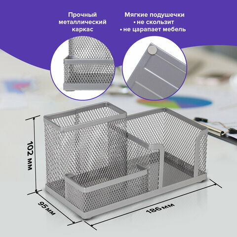 Подставка-органайзер BRAUBERG, металлическая, 3 секции, 102*186*95 мм, серебристая