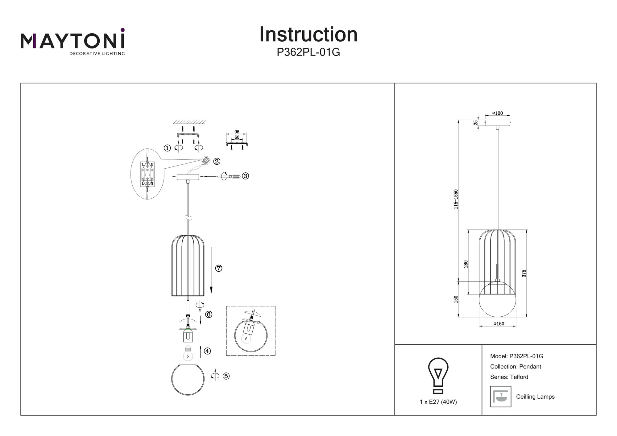 Светильник подвесной Maytoni TELFORD P362PL-01G