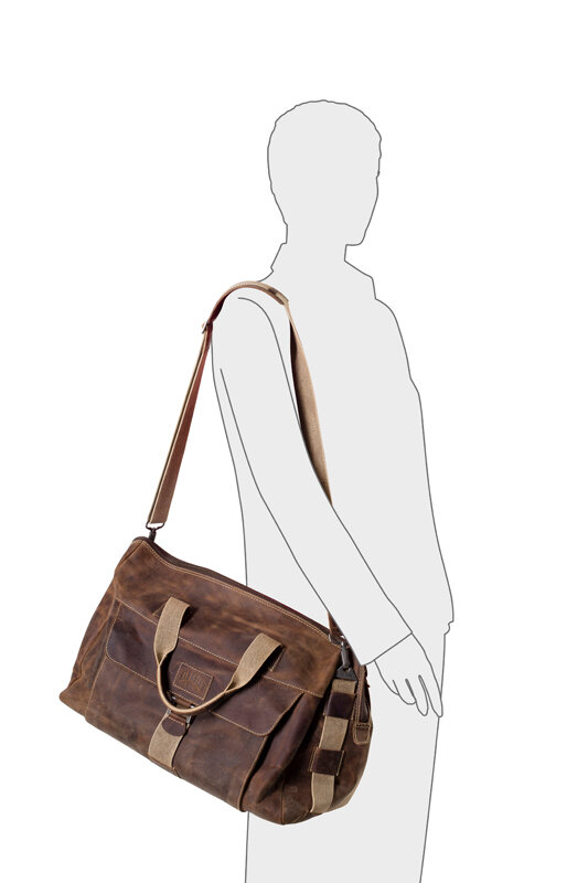 Сумка дорожная KLONDIKE Native, натуральная кожа в коричневом цвете, 52 х 25 х 35 см