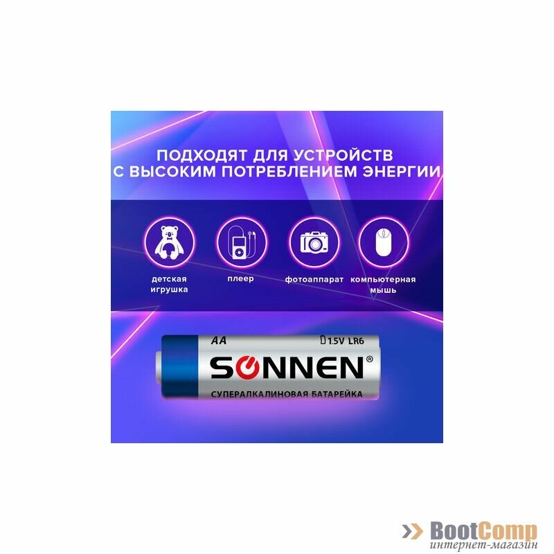 Батарейки SONNEN, AA (LR6), комплект 4шт.
