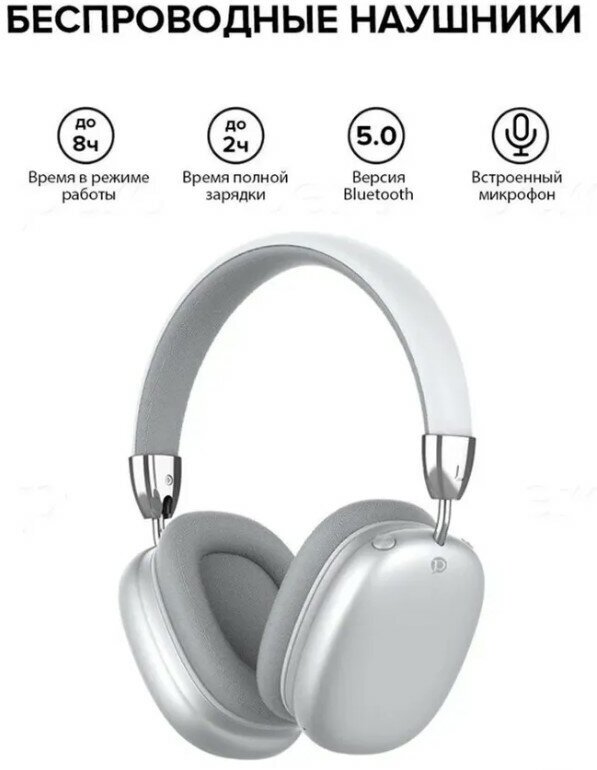 Наушники PERO BH02, беспроводные, полноразмерные, микрофон, 300мАч, до 12 часов, серебристые 9568378