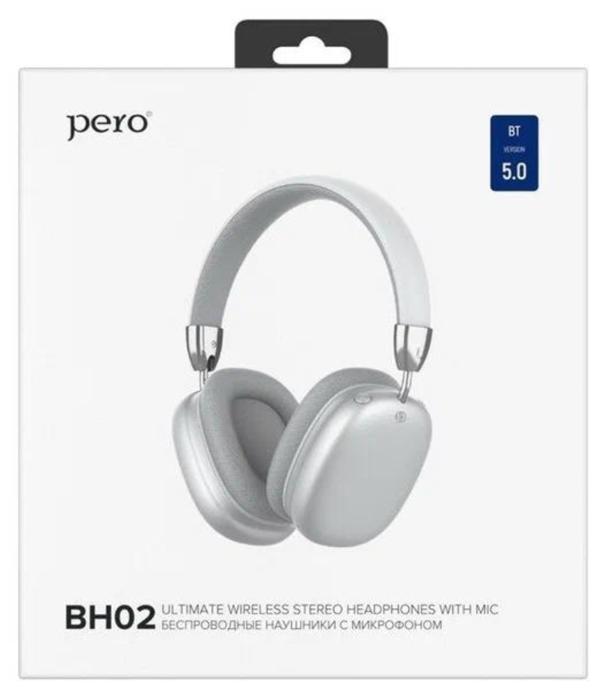 Наушники PERO BH02 ULTIMATE, беспроводные, микрофон, 300мАч, до 12 часов, серебристые