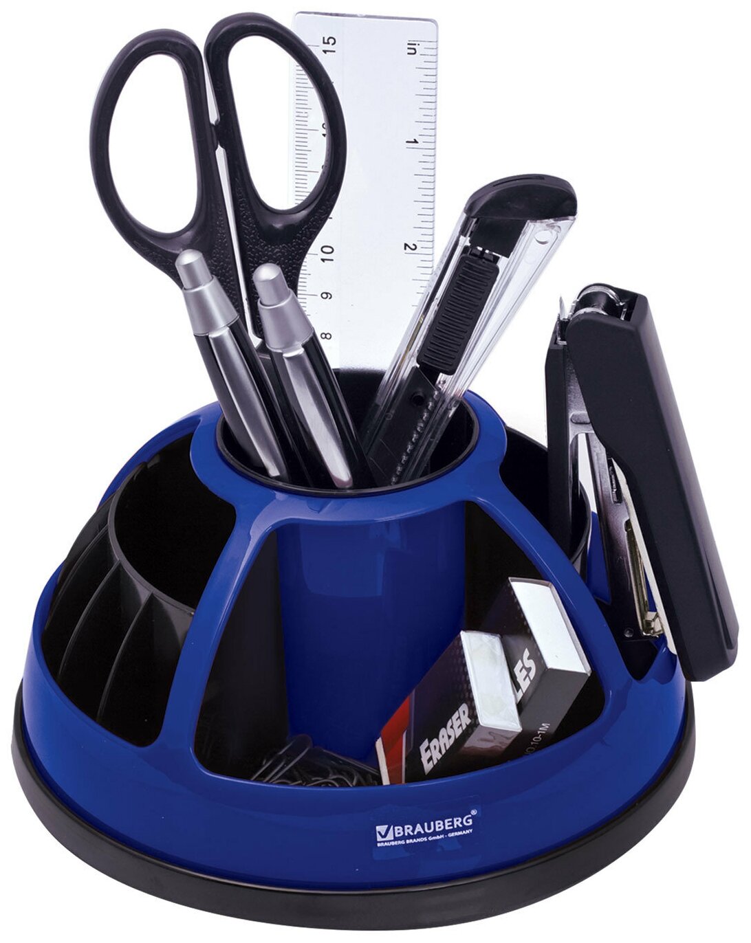 Канцелярский набор Brauberg , 10 предметов, круглое основание, вращающаяся конструкция, черный/синий, блистер