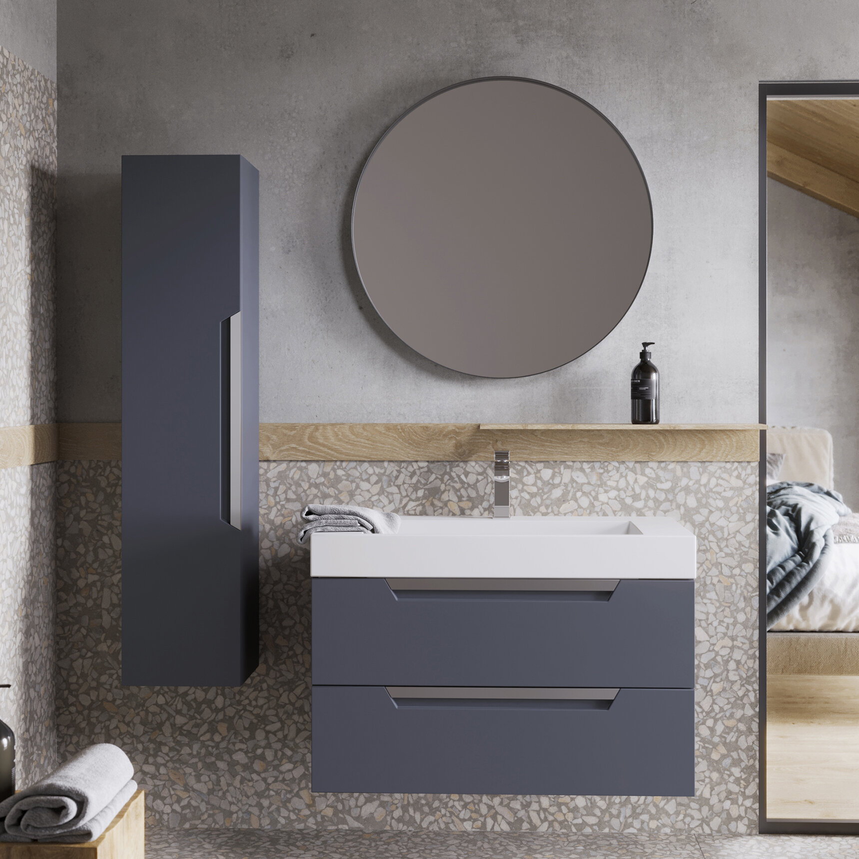Тумба с раковиной Aqwella Cube 90 подвесная серый матовый CUB0109GR+Tol.09.04.D