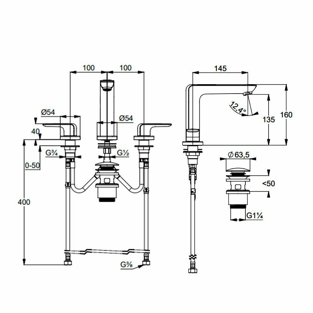 Смеситель для раковины Kludi 413930575 Ameo Смеситель для раковины, однорычажный, на 3 отверстия, хром