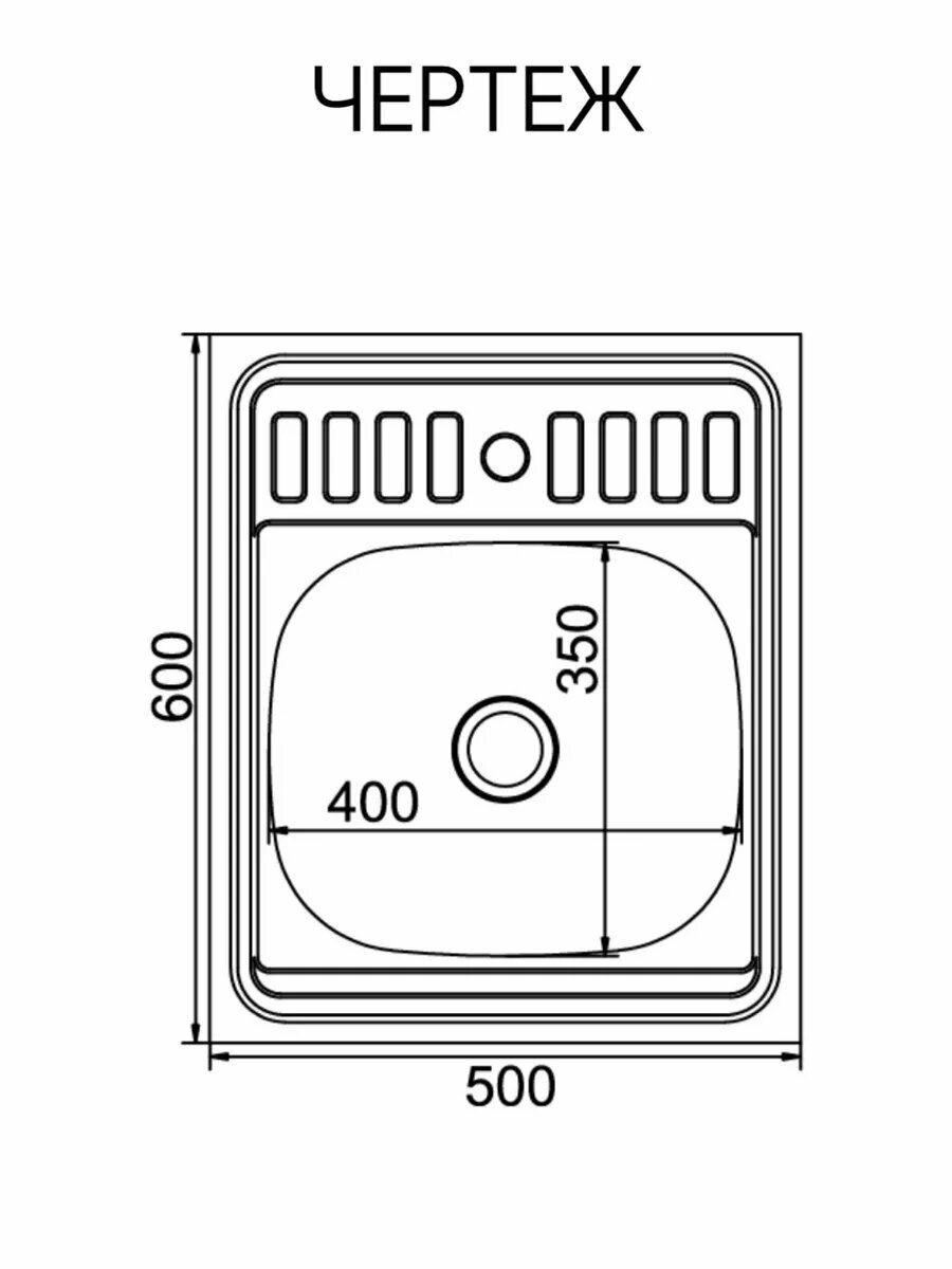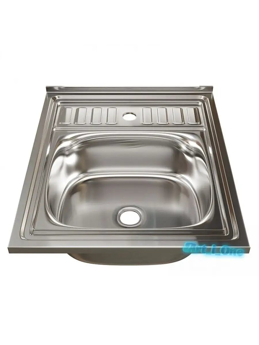 Мойка для кухни накладная, нержавеющая сталь, 50x60, 0.6 мм