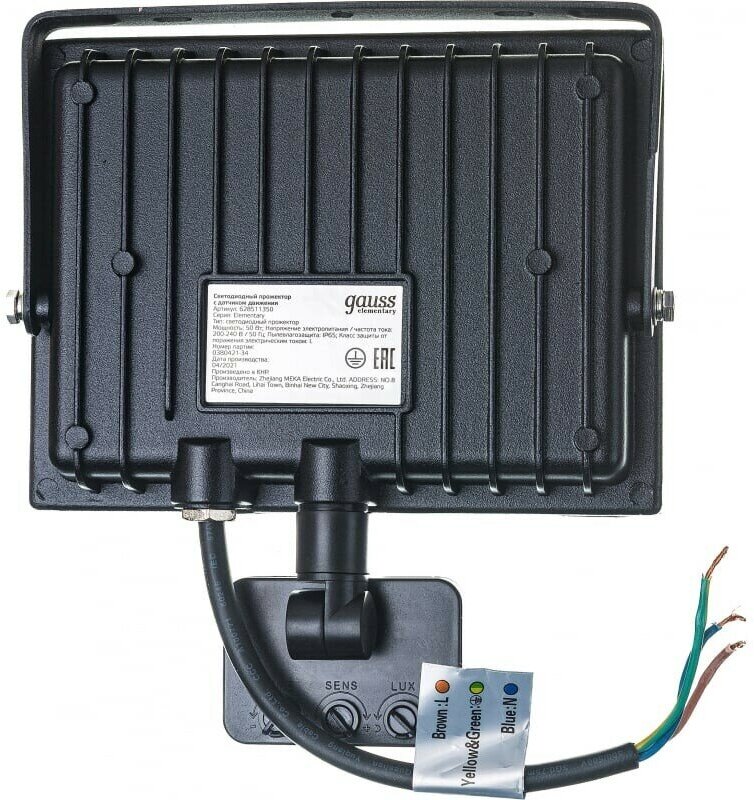 Прожектор GAUSS Elementary 50w 3450lm 6500к 175-265v ip65 черный с датчиком д