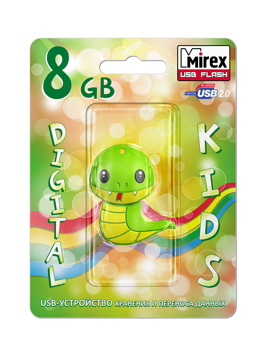 Купить Флеш накопитель 8GB Mirex Snake, USB 2.0, Зеленый 13600-KIDSNG08