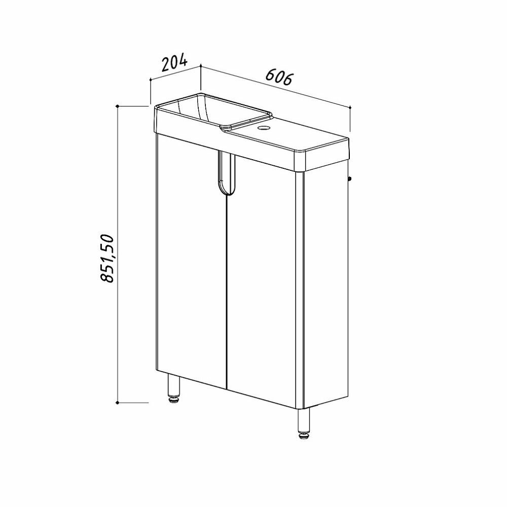 Комплект Тумба с раковиной Кадис Н 55 Белый глянцевый Левый