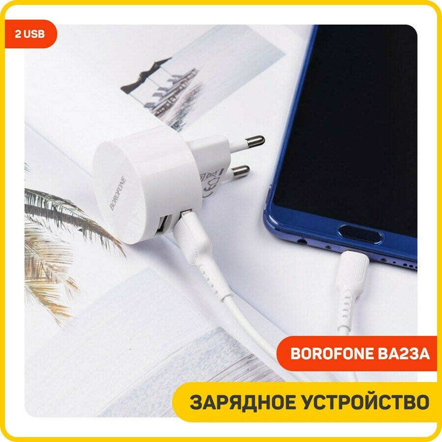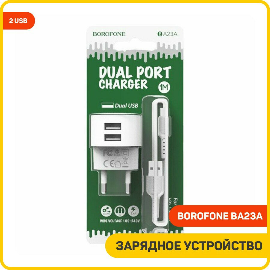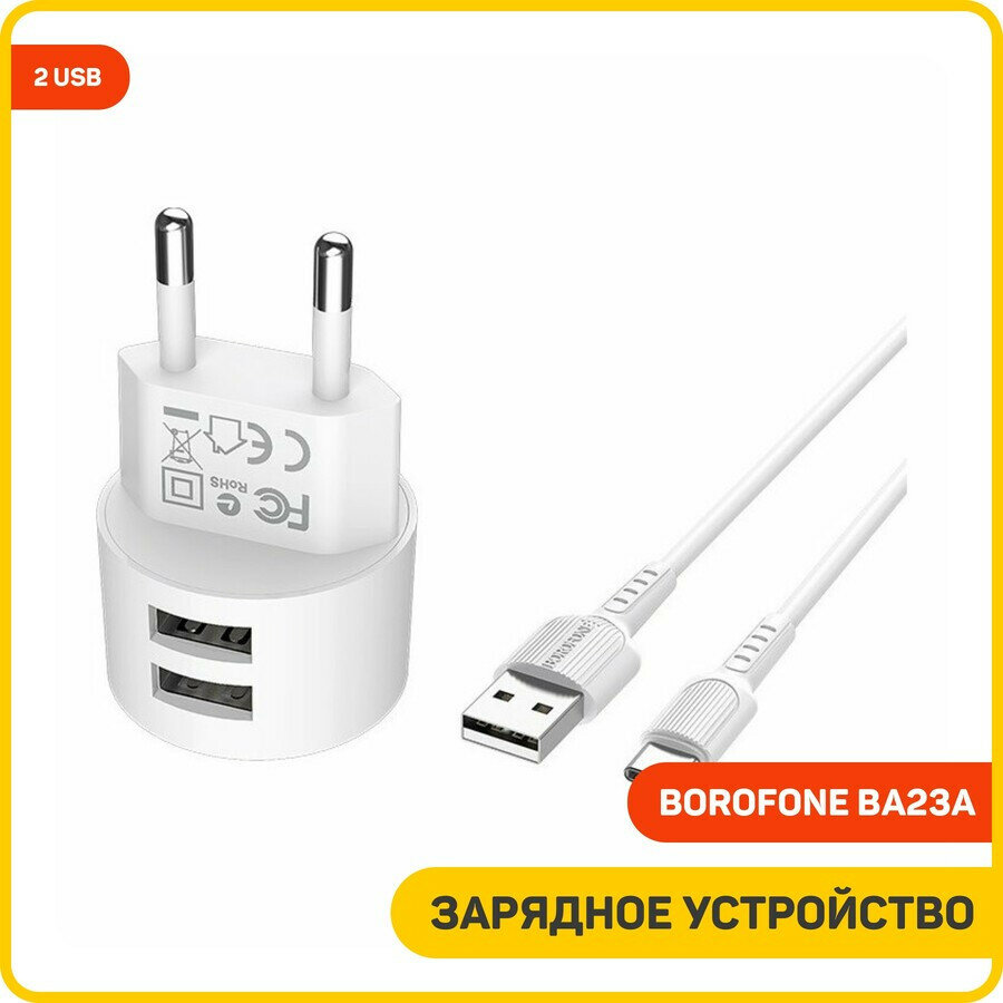 Купить Сетевое зарядное устройство (СЗУ) Borofone BA23A (2 USB) + кабель Type-C, 2.4 А, белый