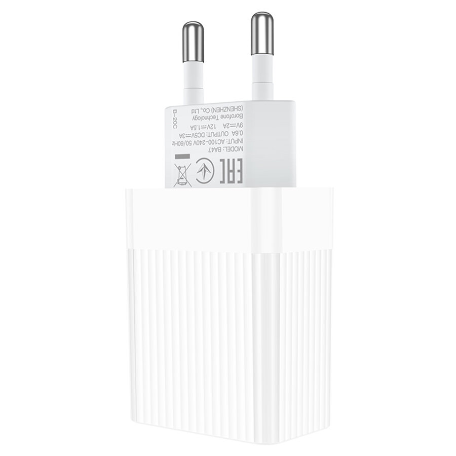 Сетевое зарядное устройство (СЗУ) Borofone BA47A QC 3.0 (USB) 3 А, белый