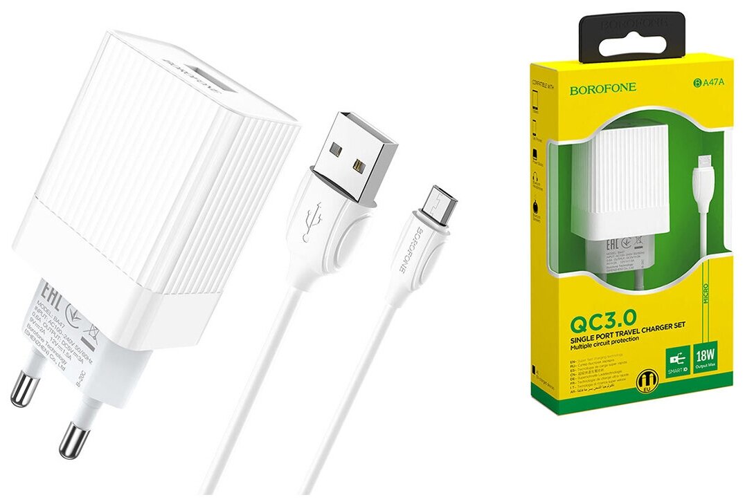 Адаптер сетевой с кабелем Borofone BA47A Mighty, 1USB, 5V, 3A, 18W +Micro USB