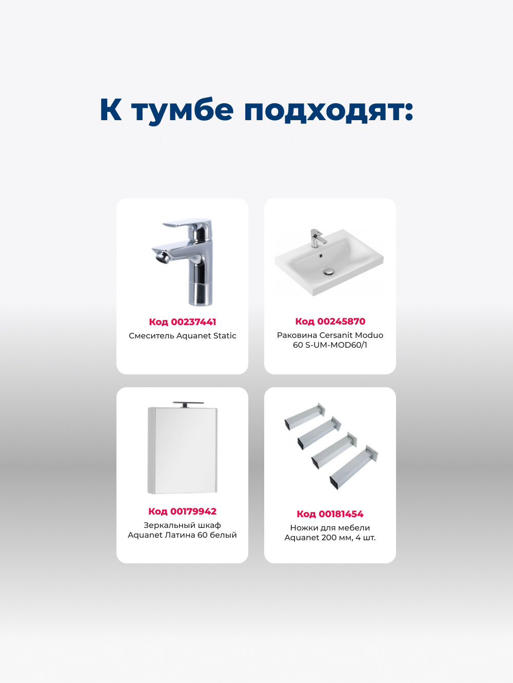 Тумба под раковину AQUANET Палермо 60 Белый Размеры: Высота 659мм Глубина 445мм Ширина 590мм