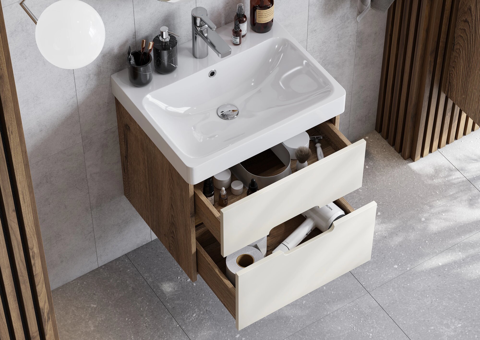 Мебель для ванной Акватон Оливия 55 бежевая/дуб веллингтон