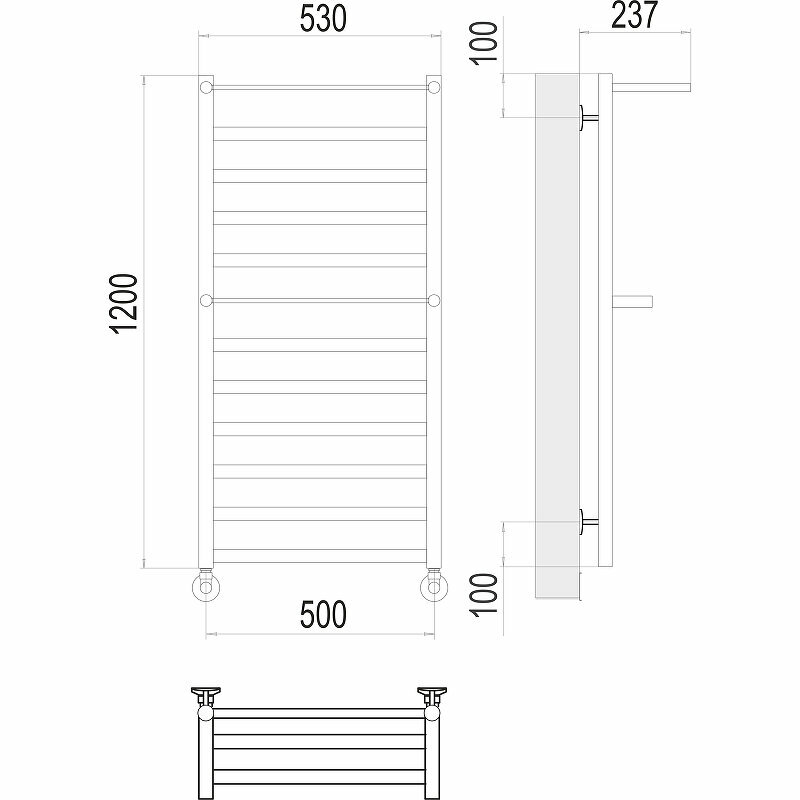 Купить Водяной полотенцесушитель Terminus Хендрикс с полкой П12 500x1200