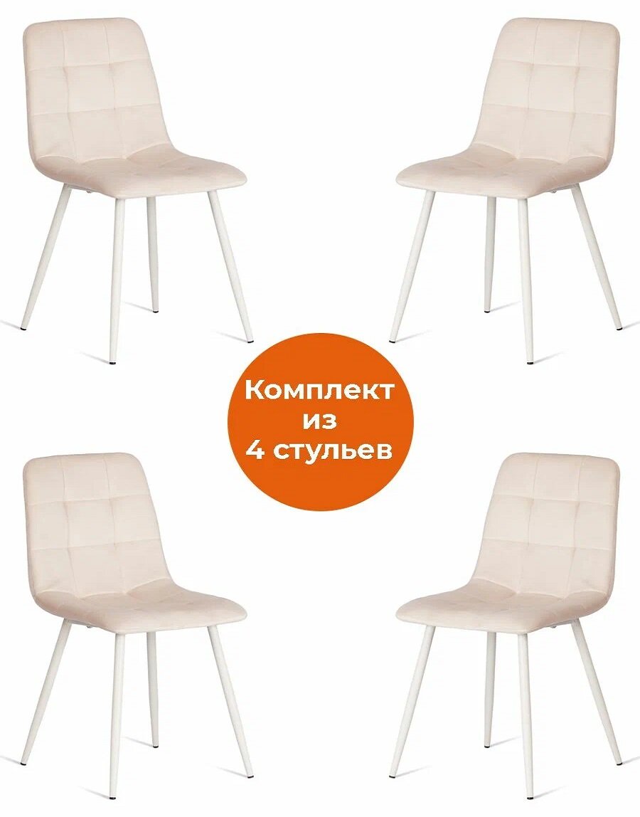 Комплект стульев TetChair CHILLY (mod. 7094-1) /(4 шт. в 1 уп.) вельвет/металл, бежевый/ белый