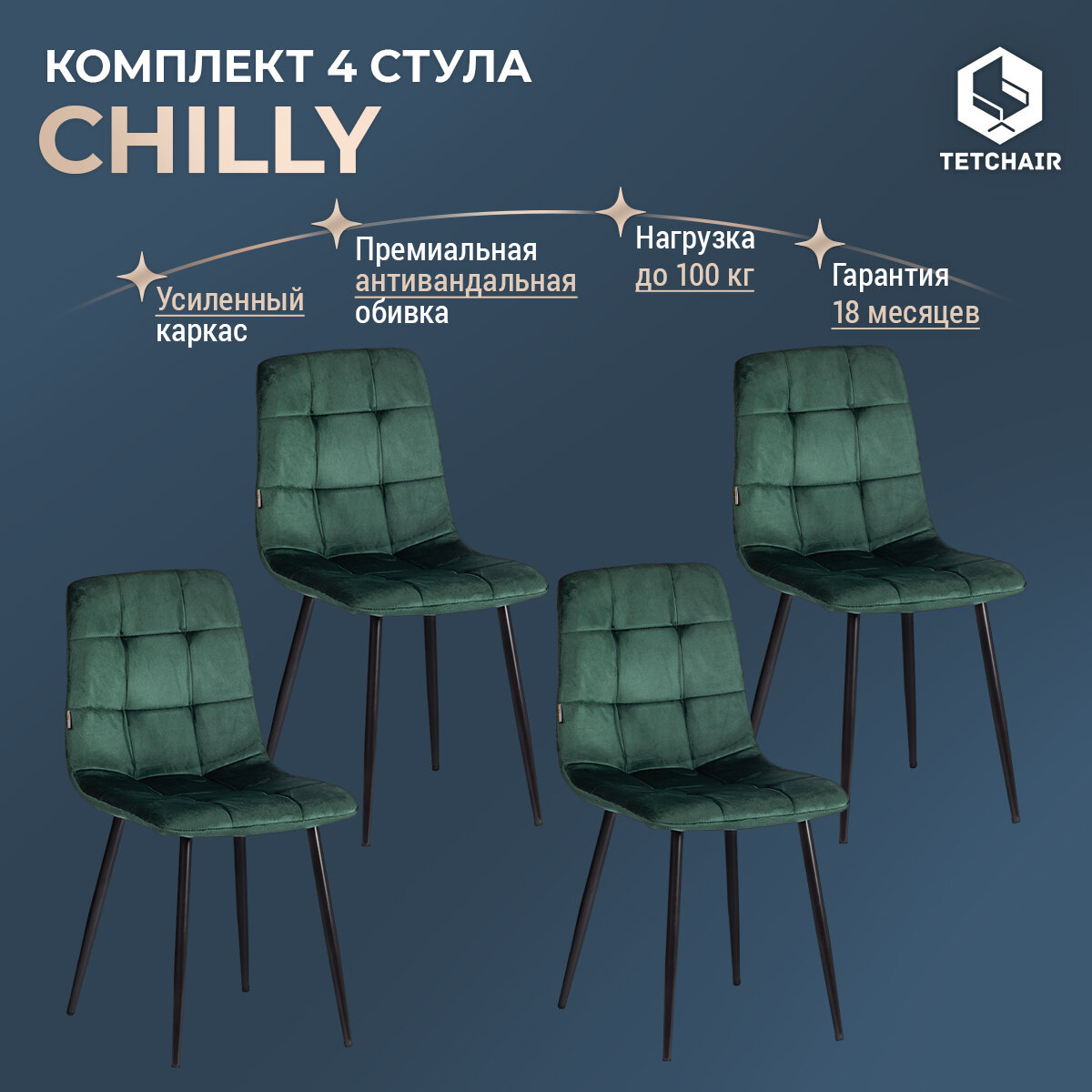 СохранитьКомплект стульев TetChair CHILLY (mod. JSC-220), 4 шт., велюр/металл, темно-зеленый/черный интересное: