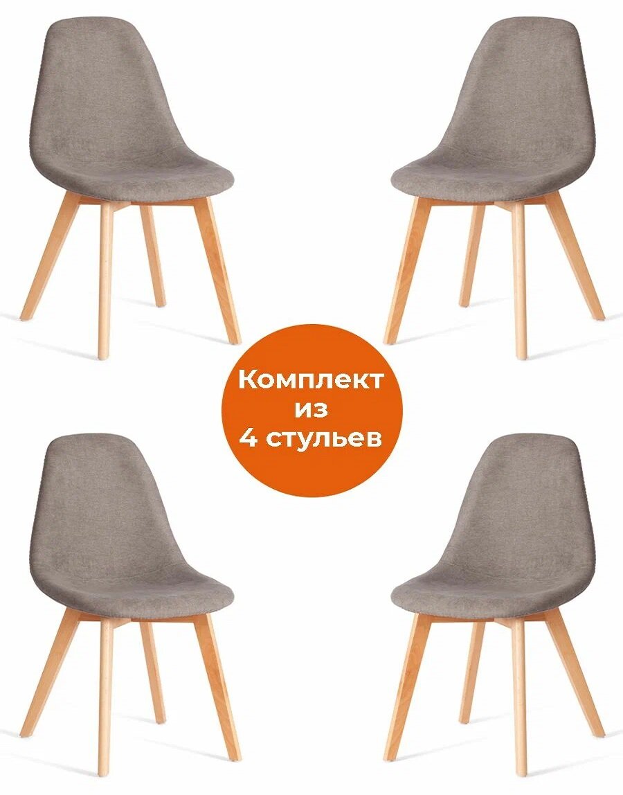 Комплект стульев TetChair CINDY SOFT (mod. C1021F1-1), 4 шт., дерево бук, велюр, светло-серый/натуральный