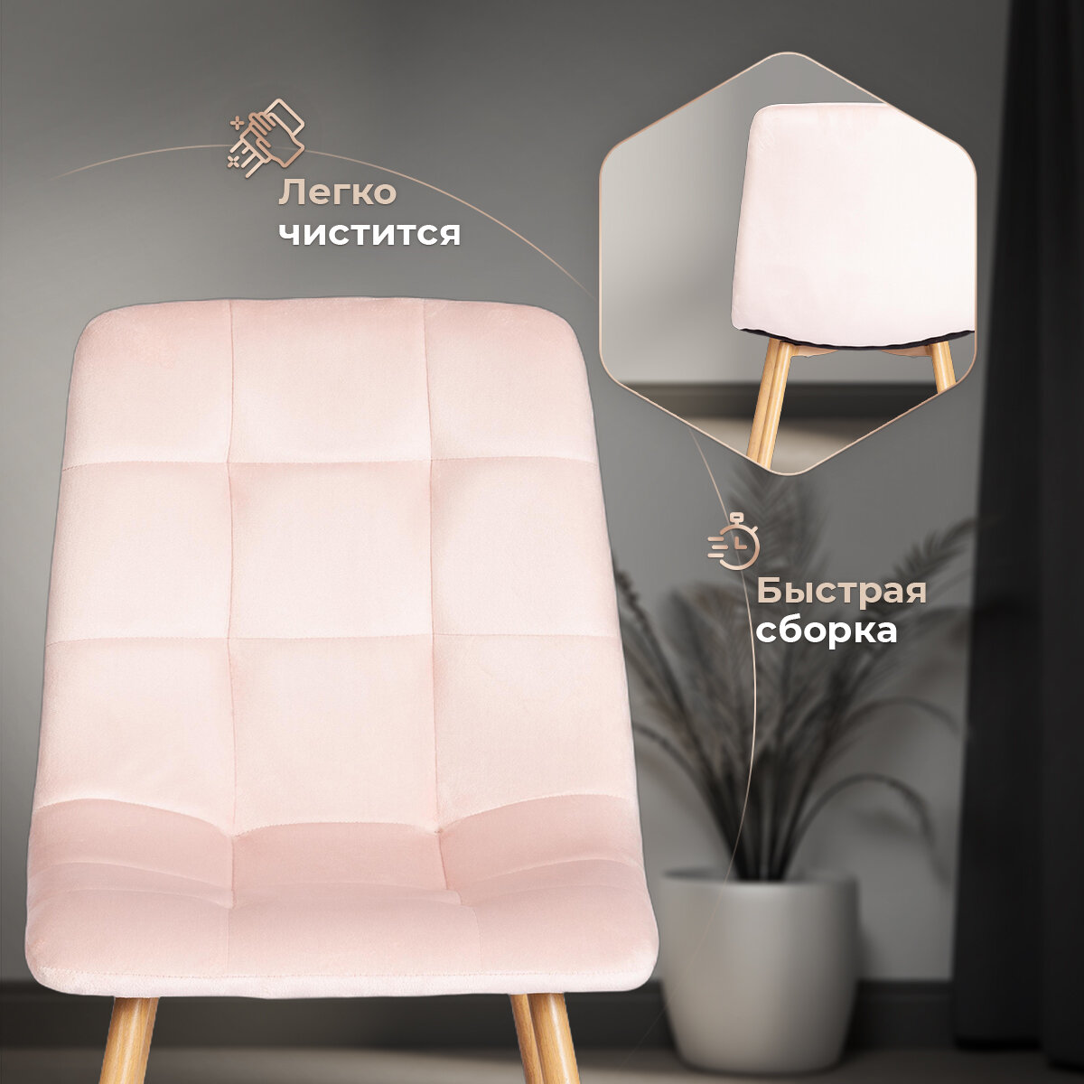 Комплект стульев TetChair CHILLY (mod. 7094-1), 4 шт, вельвет/металл, розовый/натуральный