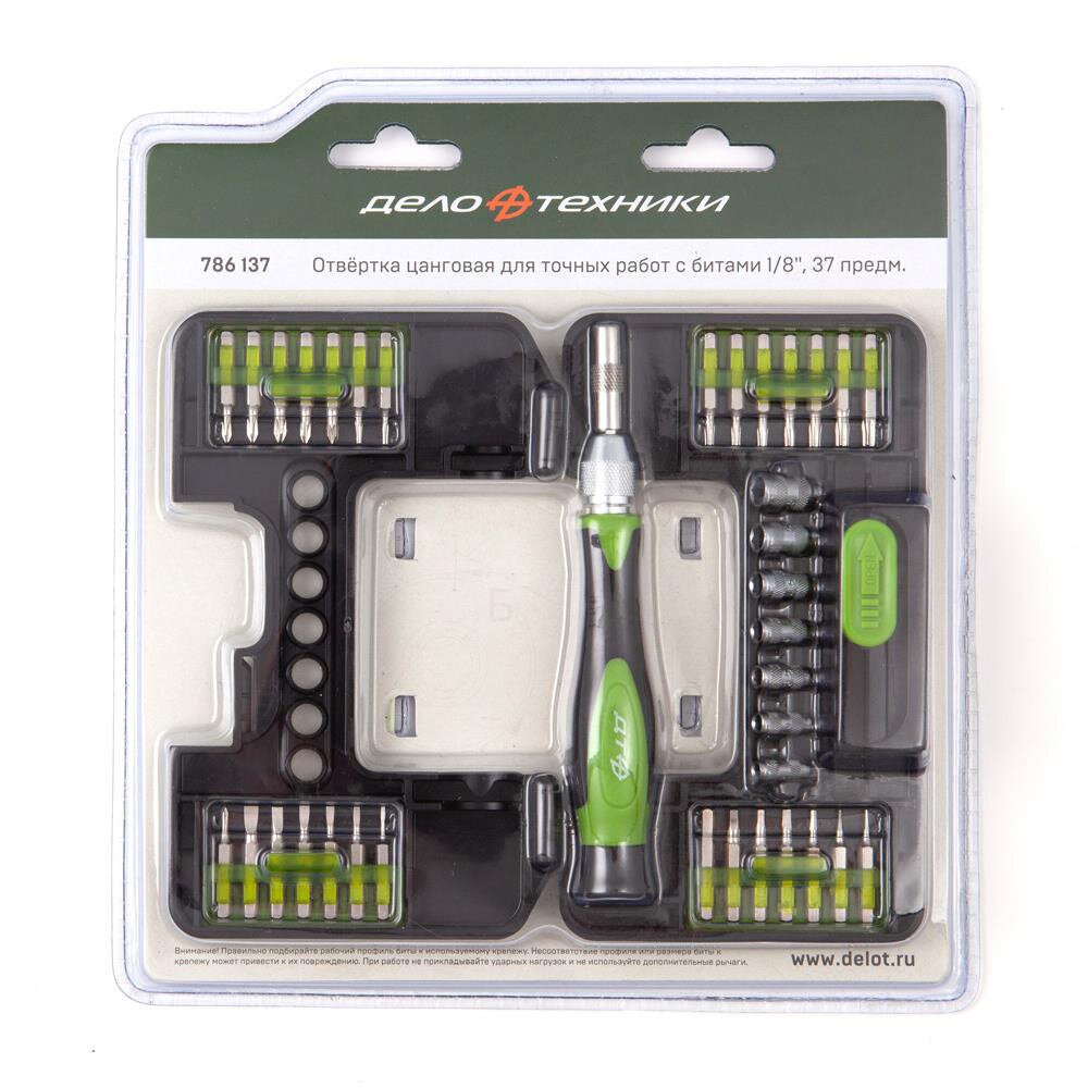 Отвёртка цанговая для точных работ с битами 1/8'', 37предметов дело техники 786137