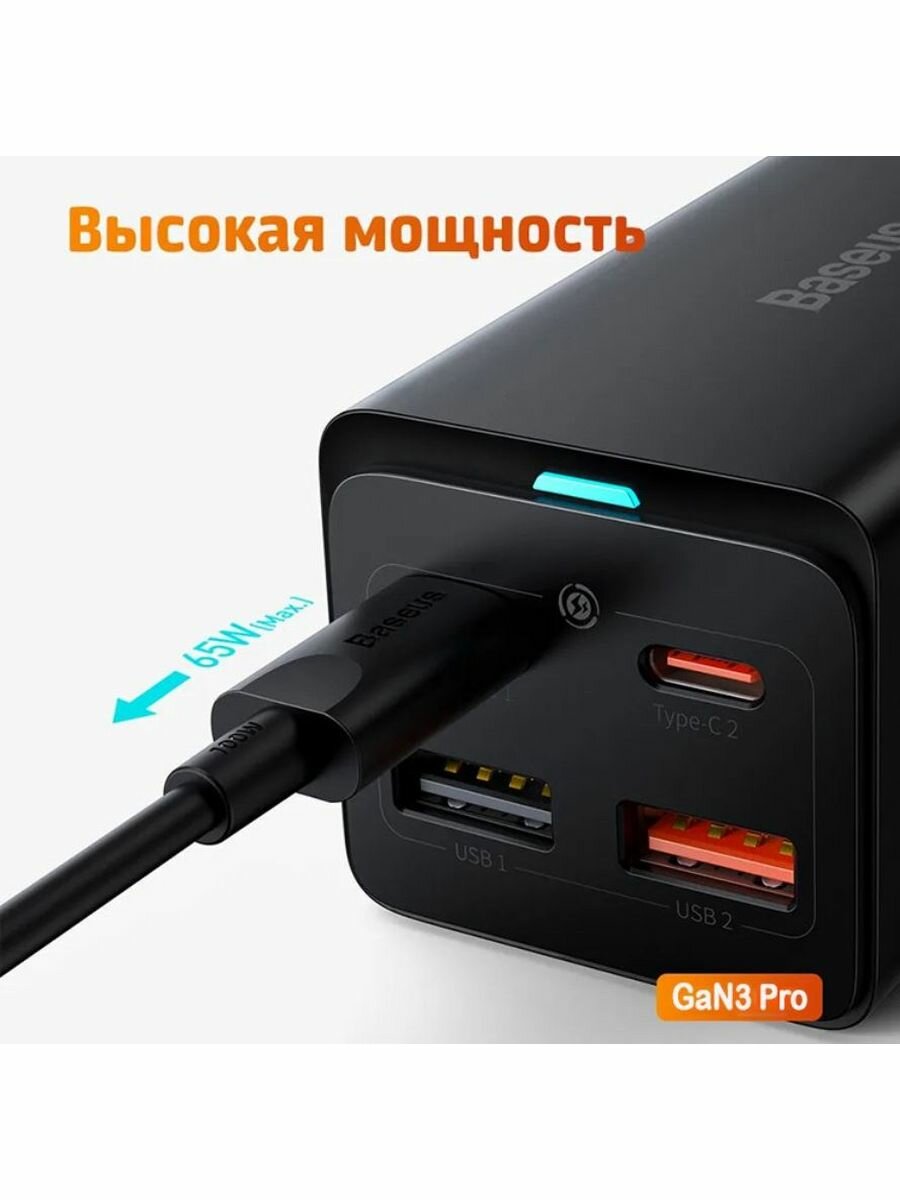 Сетевой адаптер Baseus GaN3 Pro 65W Чёрный (+ кабель Type-C 100W 1м) CCGP040101