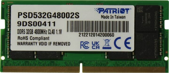 Оперативная память Patriot PSD532G48002S DDR5 - 32ГБ 4800МГц, для ноутбуков (SO-DIMM), Ret