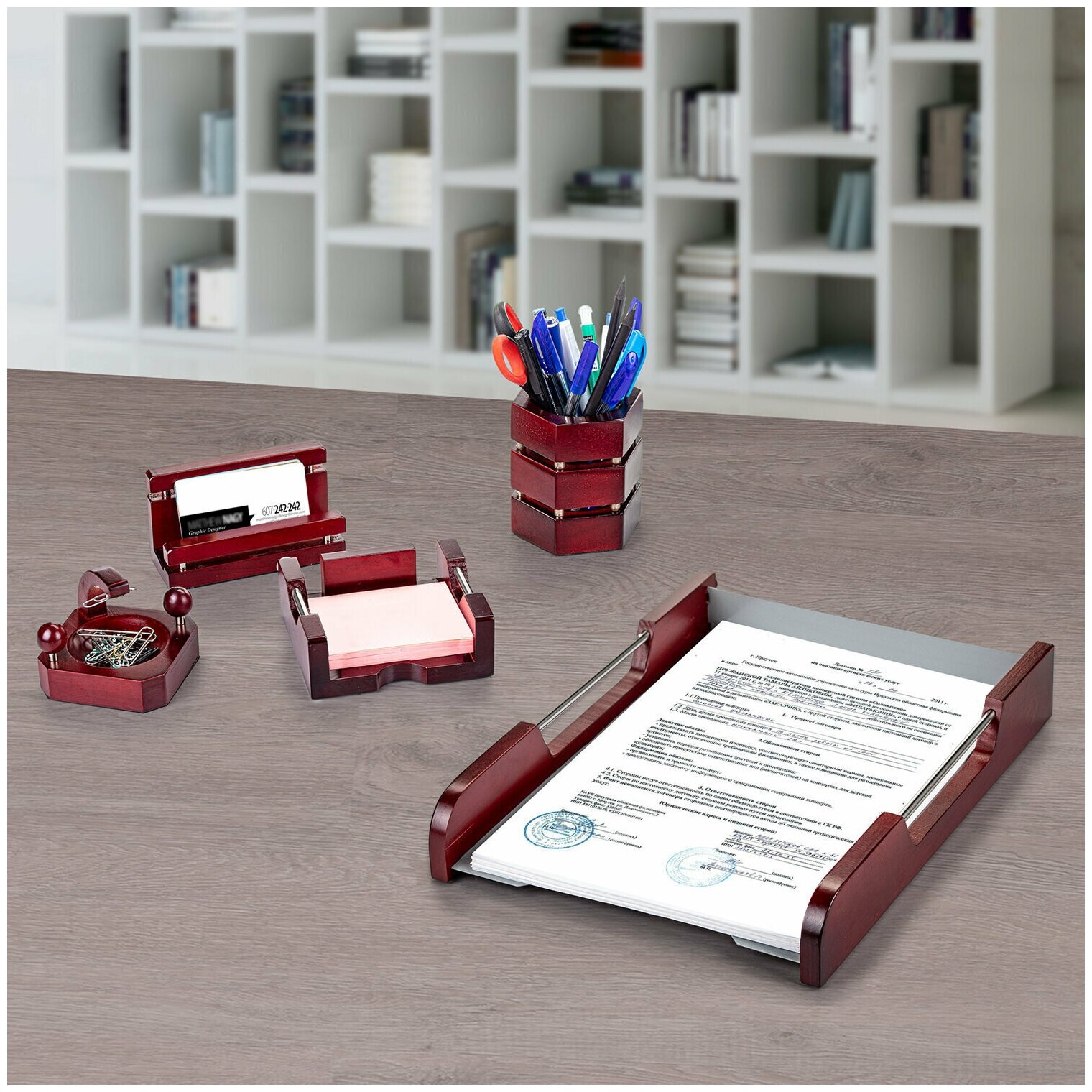 Набор настольный GALANT «Wood&Metal», 5 предметов, красное дерево и никелированный металл, 230873 /Квант продажи 1 ед./