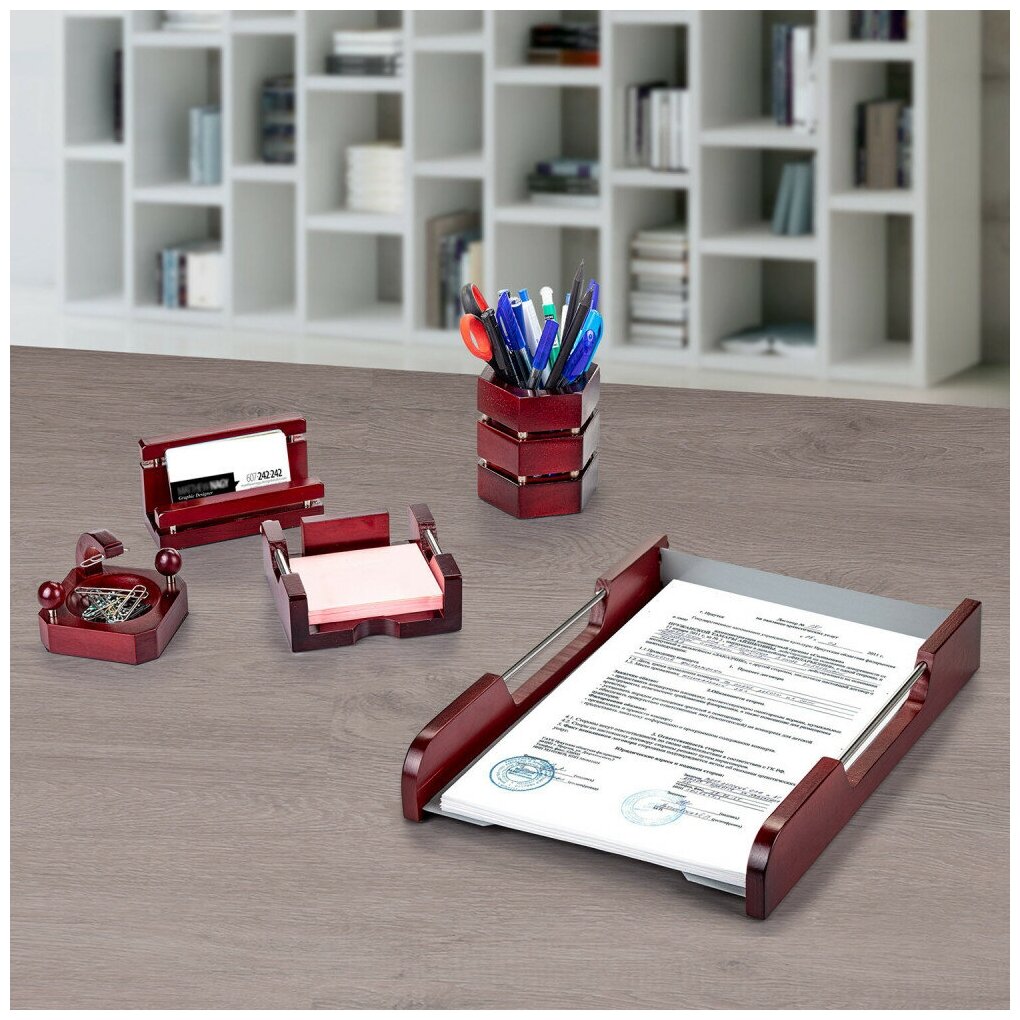 Набор настольный GALANT "Wood&Metal", 5 предметов, красное дерево и никелированный металл, 230873, 230873