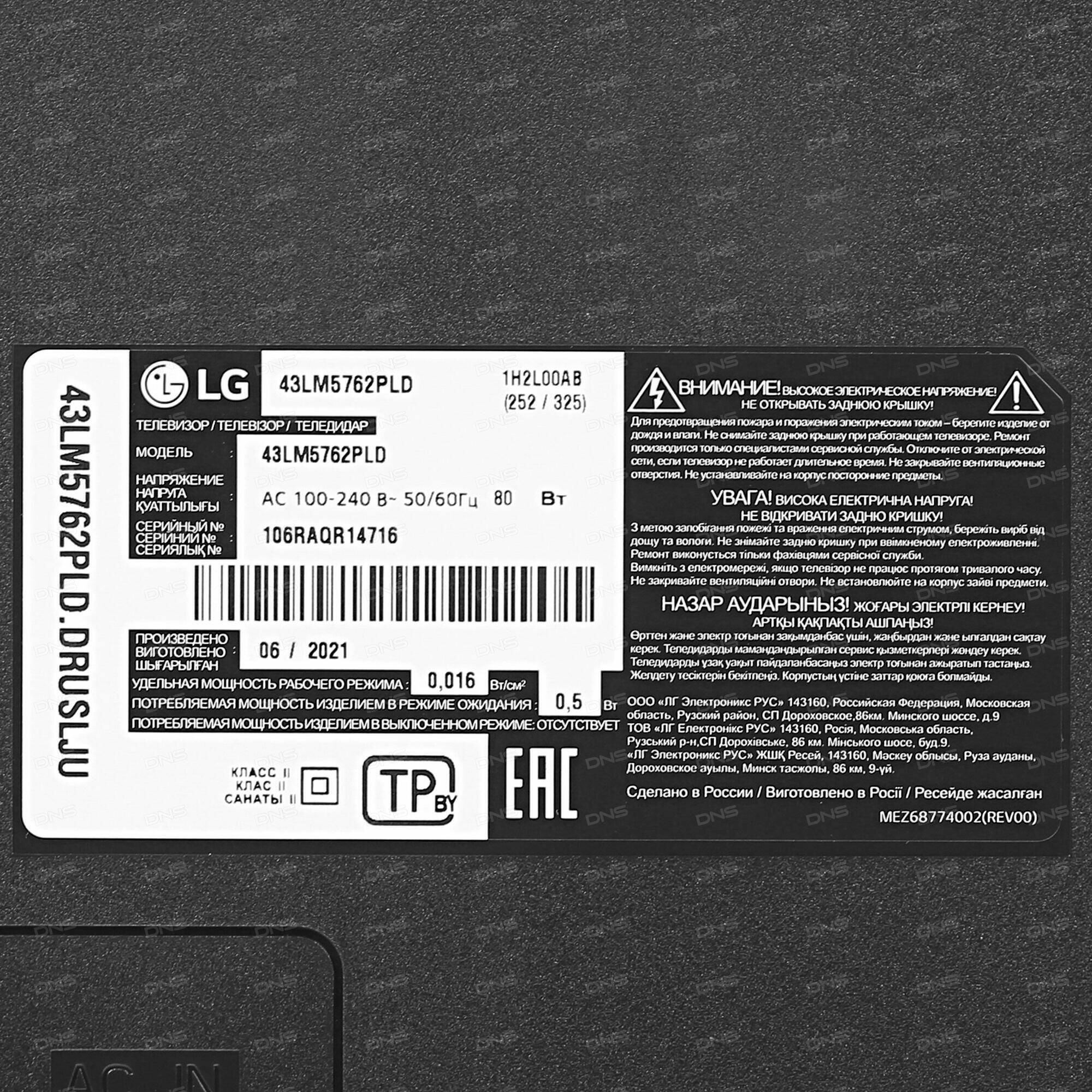 43" Телевизор LG 43LM5762PLD 2021 LED, HDR, черный