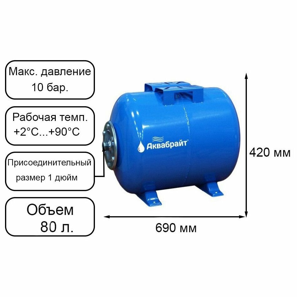 Гидроаккумулятор Аквабрайт ГМ-80Г 80 л горизонтальный