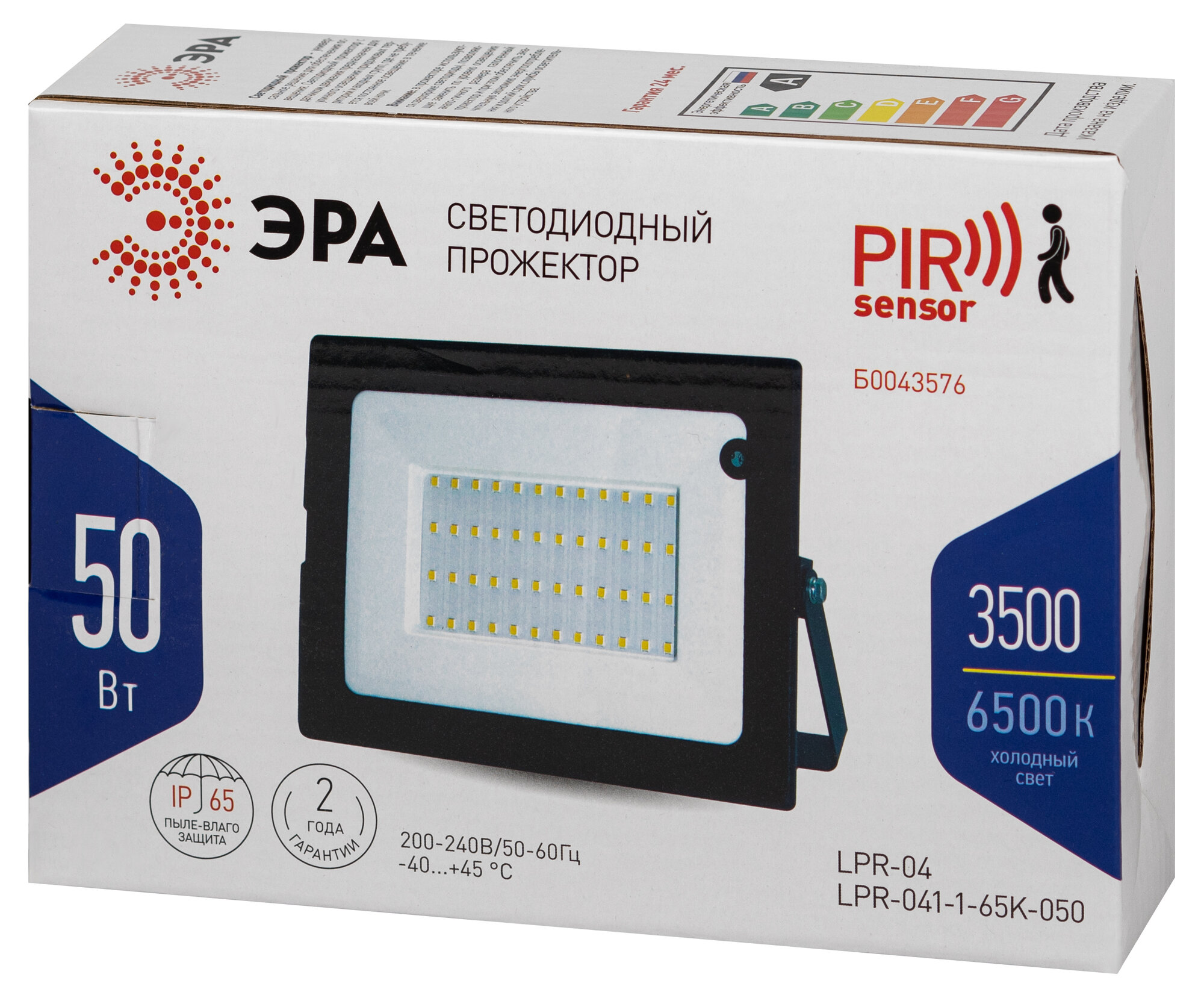 Прожектор Эра Стандарт LPR-041-1-65K-050 50Вт 3500Лм 6500К датчик движ нерегулир 183x