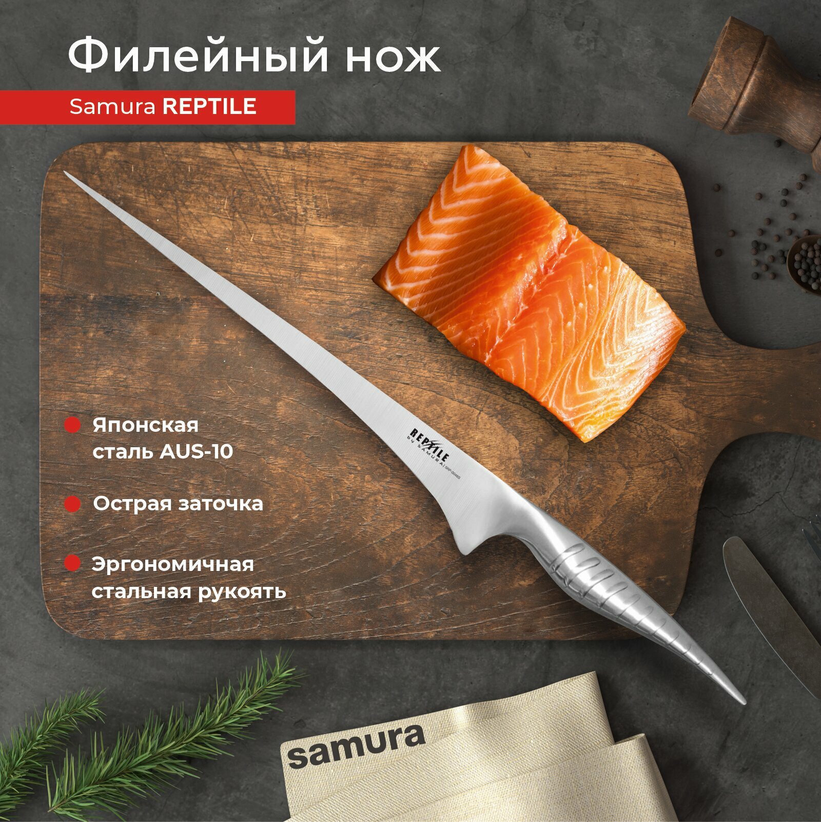 Нож кухонный поварской Samura Reptile филейный для нарезки мяса рыбы профессиональный SRP-0048F