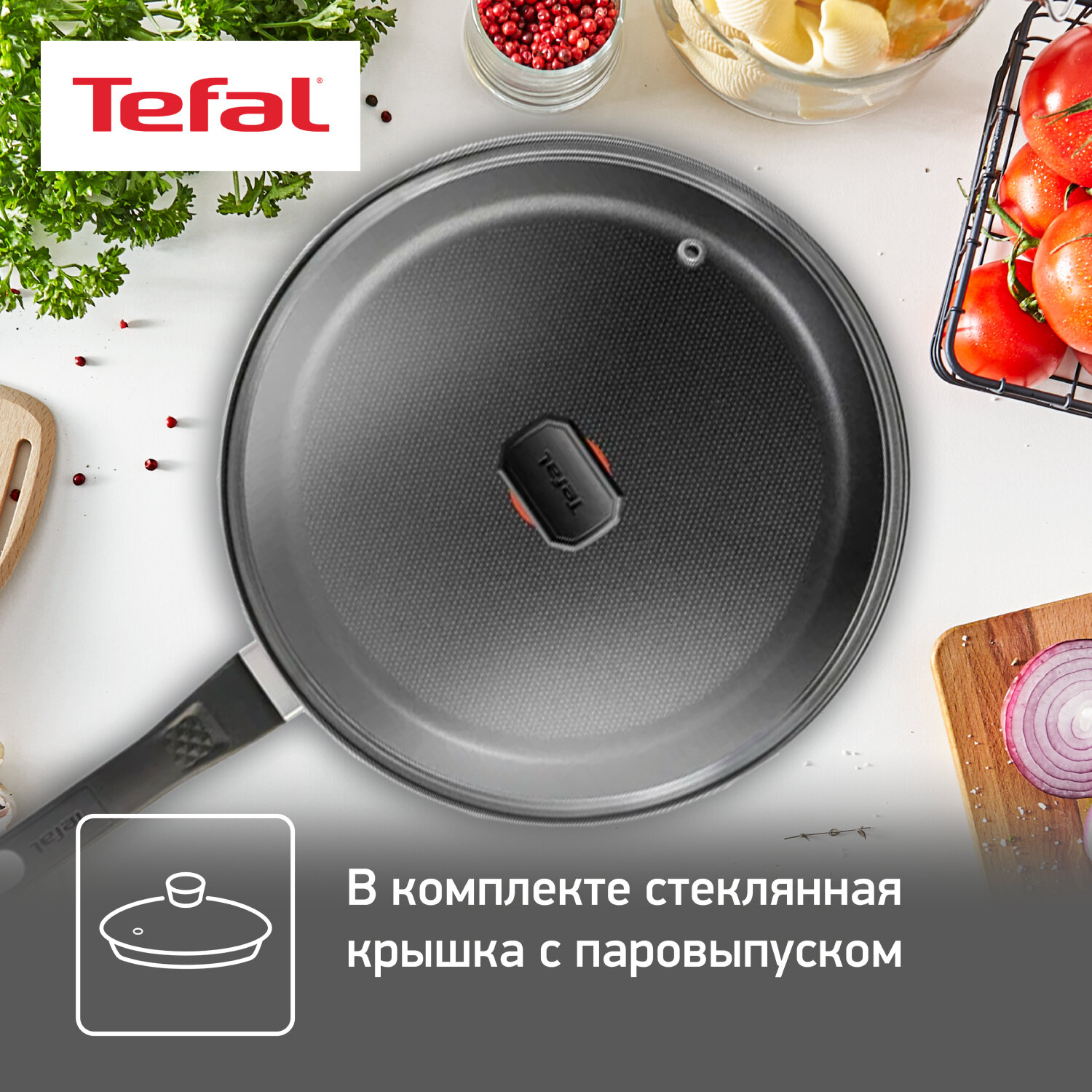 Сковорода с крышкой Tefal Easy Plus 04206928, диаметр 28 см, с индикатором температуры, с антипригарным покрытием, для газовых, электрических плит