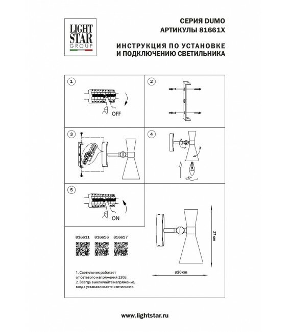 Настенное бра Lightstar Dumo 816616, E14, 40Вт, кол-во ламп:1шт, Белый