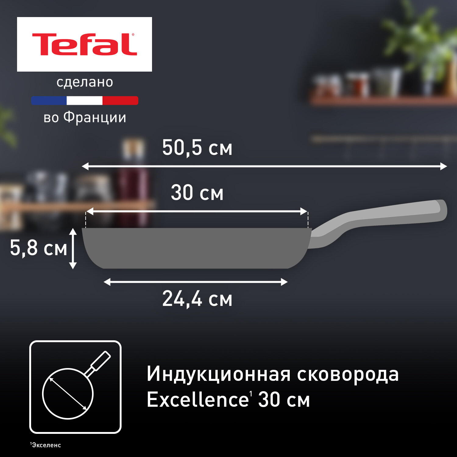 Купить Сковорода Tefal Excellence G2690772, 30 см, глубокая с антипригарным покрытием, подходит для индукции, сделано во Франции