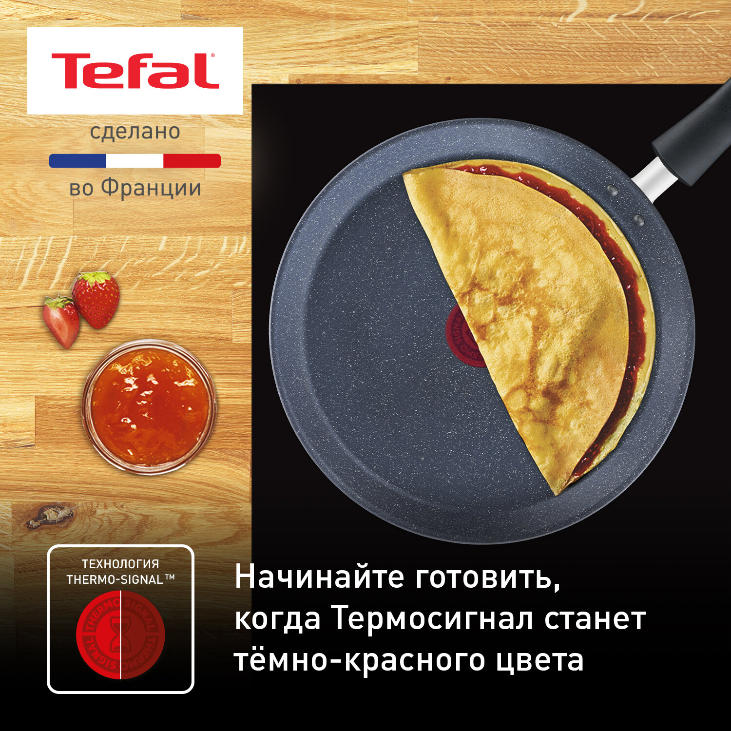 Блинная сковорода Tefal Healthy Chef G1503872, диаметр 25 см, с индикатором температуры, с антипригарным покрытием, для газовых, электрических и индукционных плит, сделано во Франции